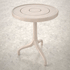 This side table is part of a collection of carved dining, lounge and poolside seating and tables. Designed for outdoor use, they are manufactured from "Philippine mahogany," and finished with an exterior-grade clear-coat and a distressed, crackled white finish.